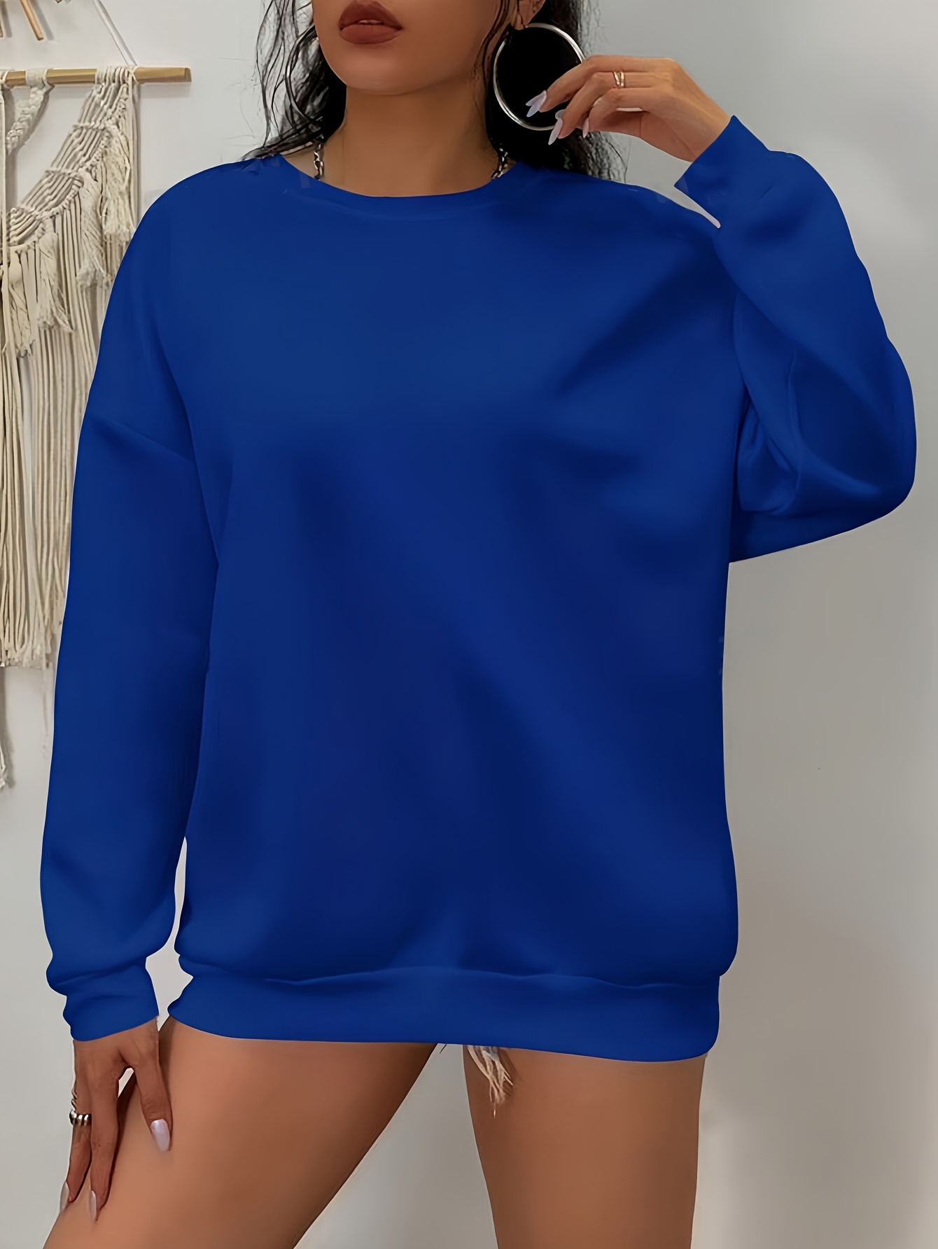 1pc Women'S Plus Size Fashion Sweatshirt, 100% Polyester Crew Neck Pullover with Slight Stretch, Solid Color Knit Fabric for Fall/Winter