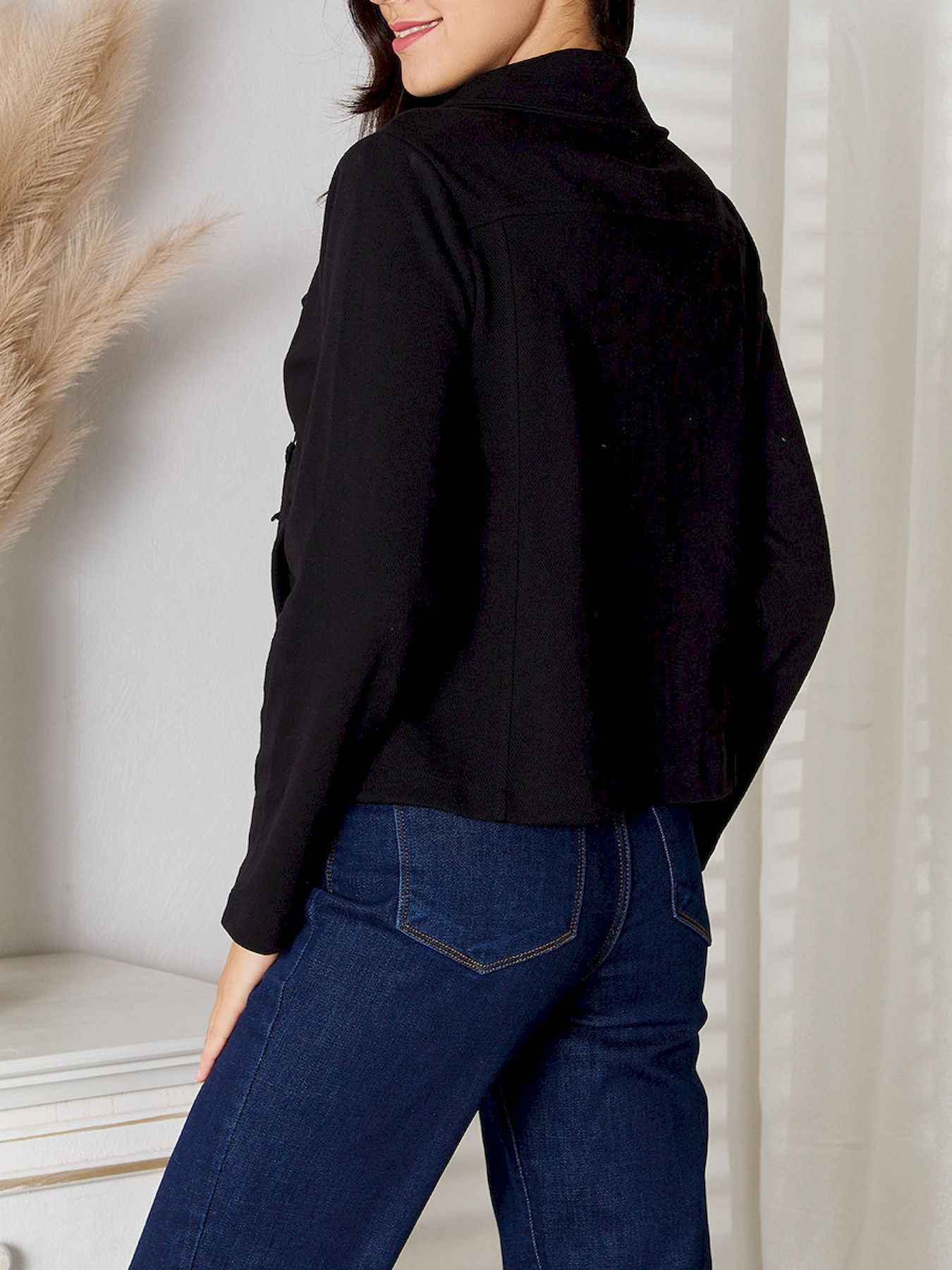 1pc Women'S Casual Cotton Jacket - Solid Color, Slight Stretch, Asymmetrical Zip-Up with Pockets, Soft Fabric, Long Sleeves, Relaxed Fit, Shawl Collar, Hip-Length - Ideal for Spring/Fall/Winter Everyday Wear