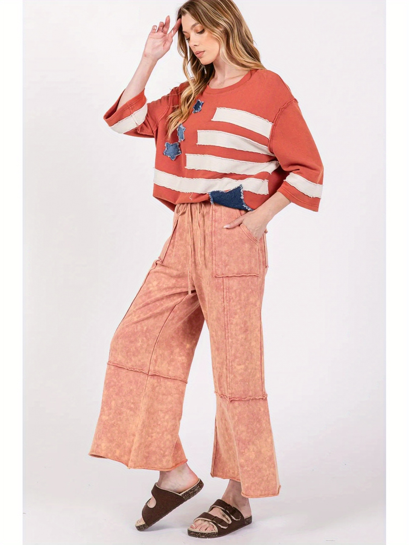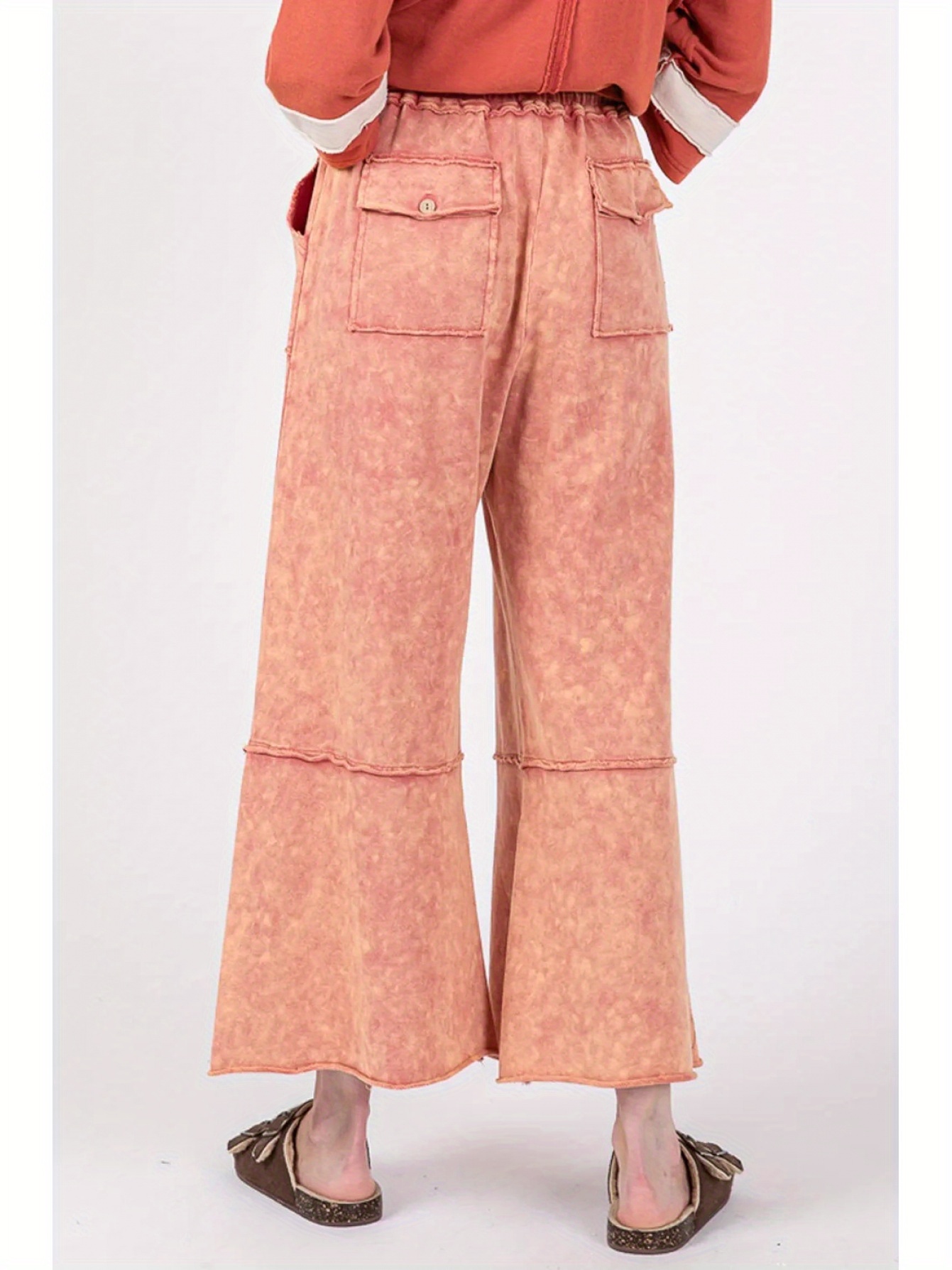 1pc Women'S Casual Wide Leg Pants with Pockets and Drawstring - Solid Color Polyester, Woven, Lace-Up Design for Fall/Winter - Adult Fashion Baggy Trousers