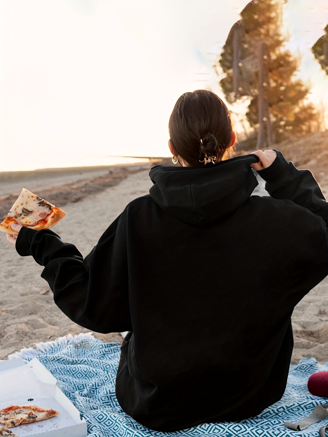 Chic Plus Size Womens Hoodie with Slogan Print - Adjustable Hood, Kangaroo Pockets, Long Sleeves - Perfect Casual Top for Fall & Winter - Comfortable, Stylish Plus Size Clothing