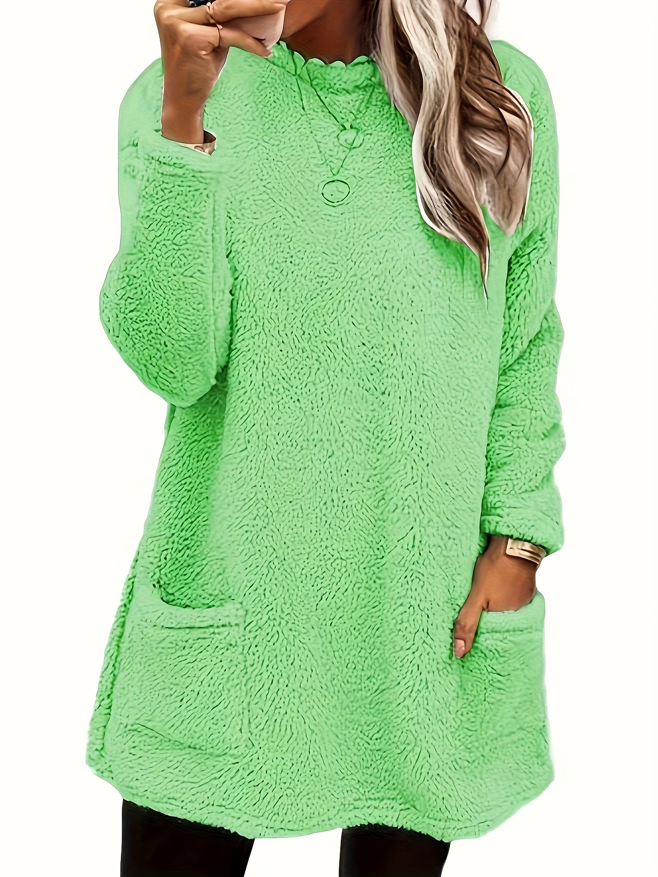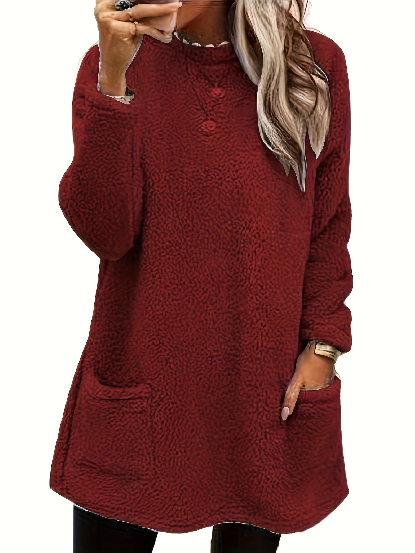 Cozy Plus-Size Fleece Pullover - Warm Long Sleeve Top with Pockets, Ideal for Casual Wear