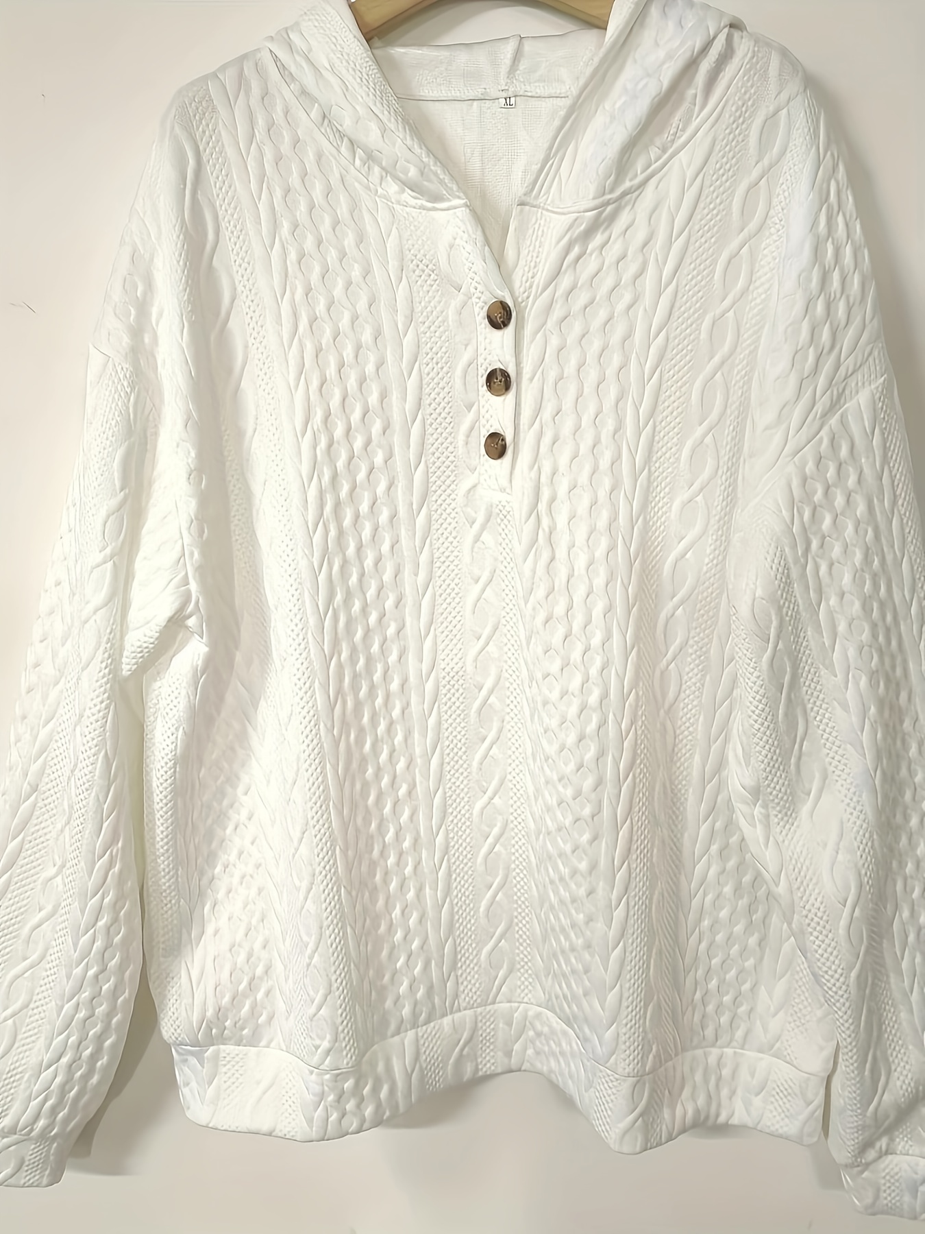 Plus Size Cozy Sweatshirt - Ultra-Comfortable Long Sleeve Henley Hooded Design with Premium Solid Jacquard Fabric - Designed for Womens Plus Sizes