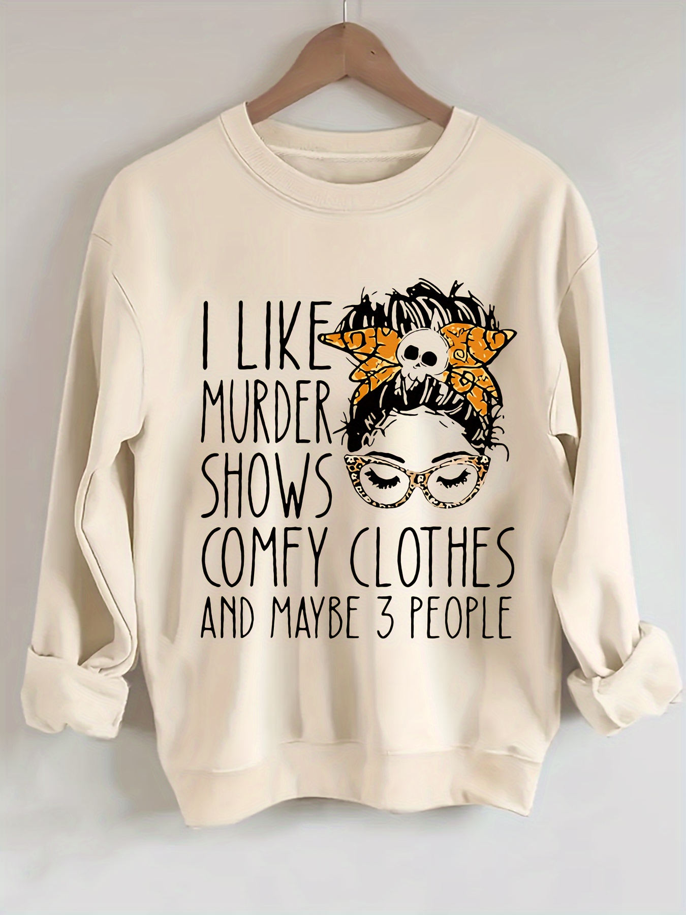 Plus Size I Like Print Sweatshirt, Casual Long Sleeve Crew Neck Pullover Sweatshirt, Women's Plus Size Clothing
