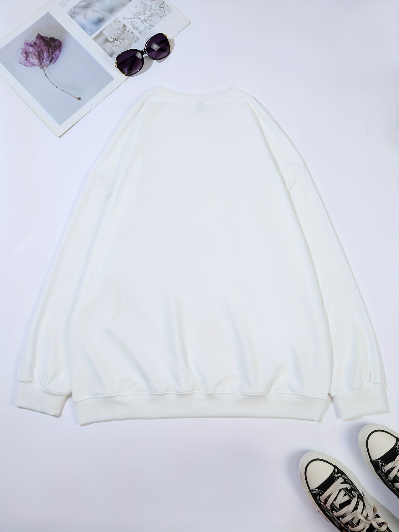Plus Size Letter Print Sweatshirt, Crew Neck Casual Sweatshirt For Fall & Spring, Women's Plus Size Clothing