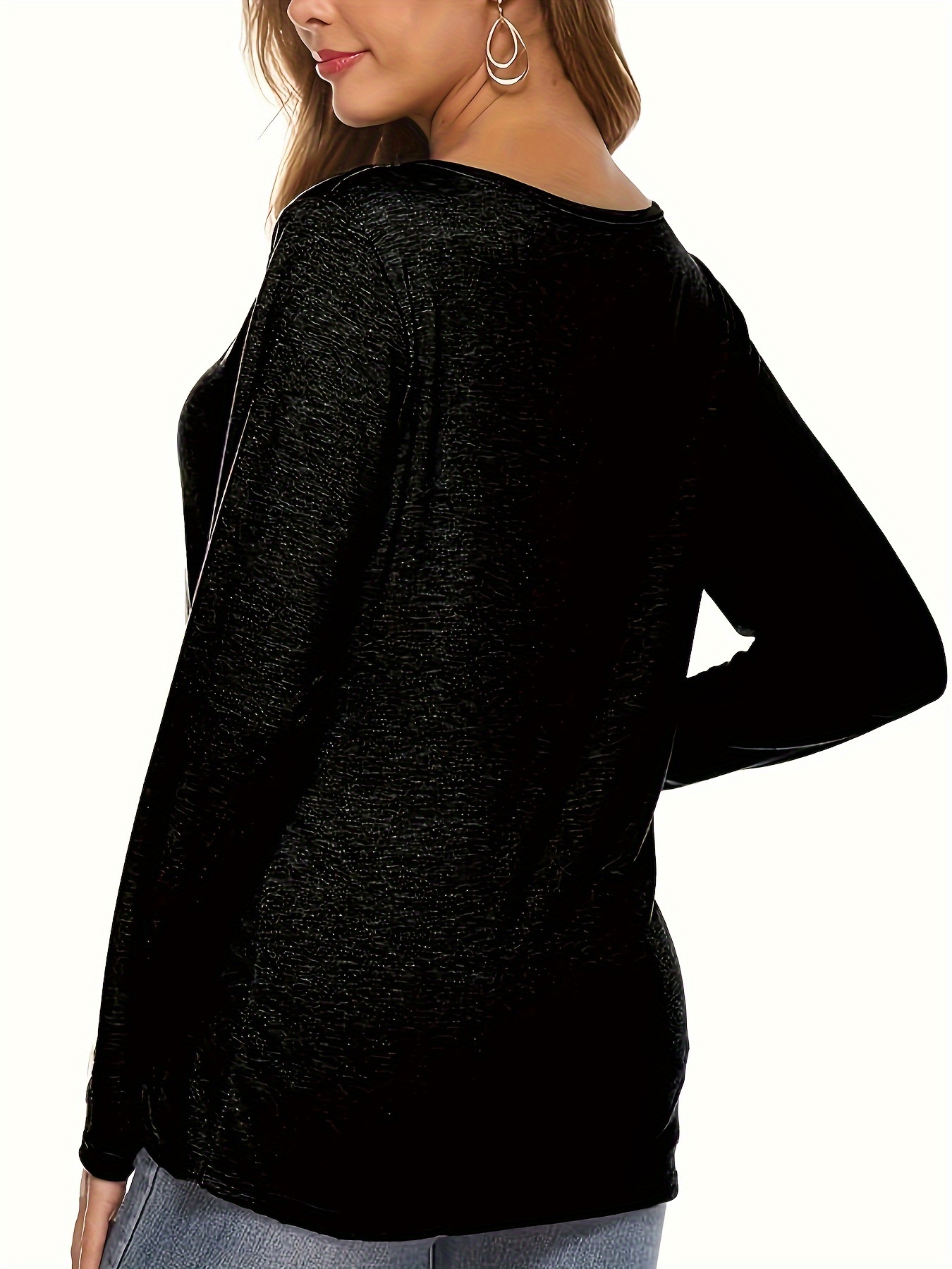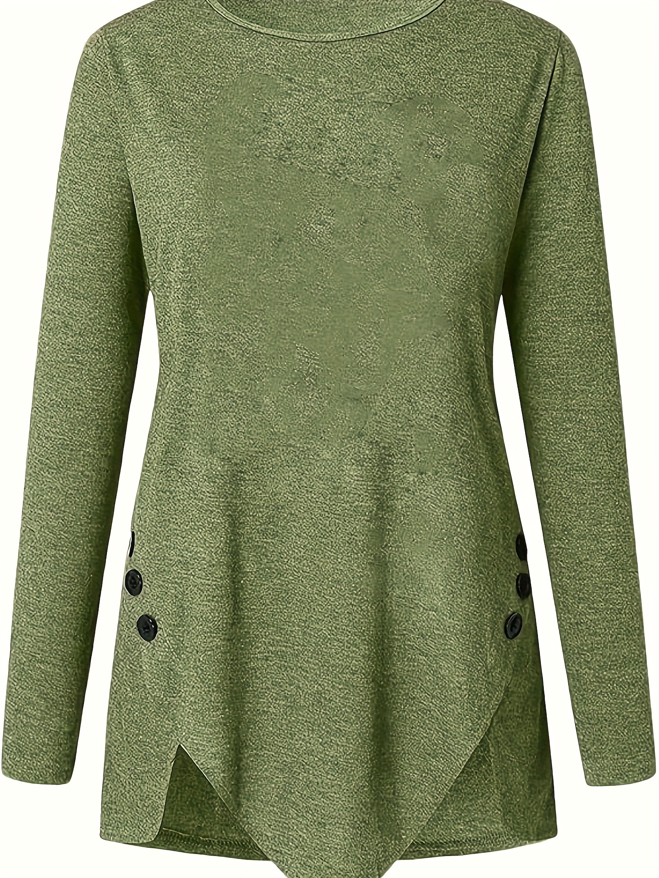 Plus Size Women's Irregular Button-hem Long-sleeved Loose T-shirt