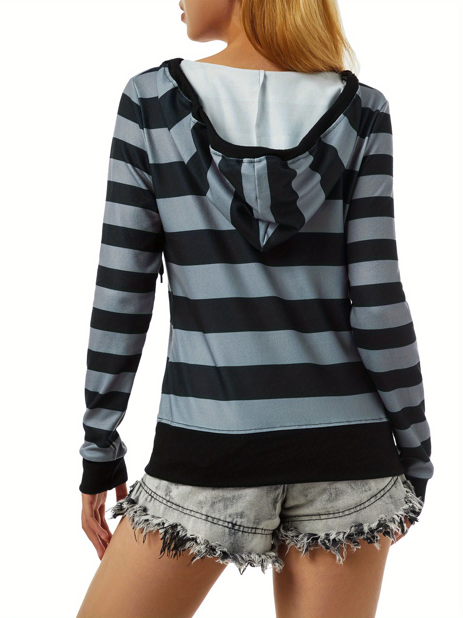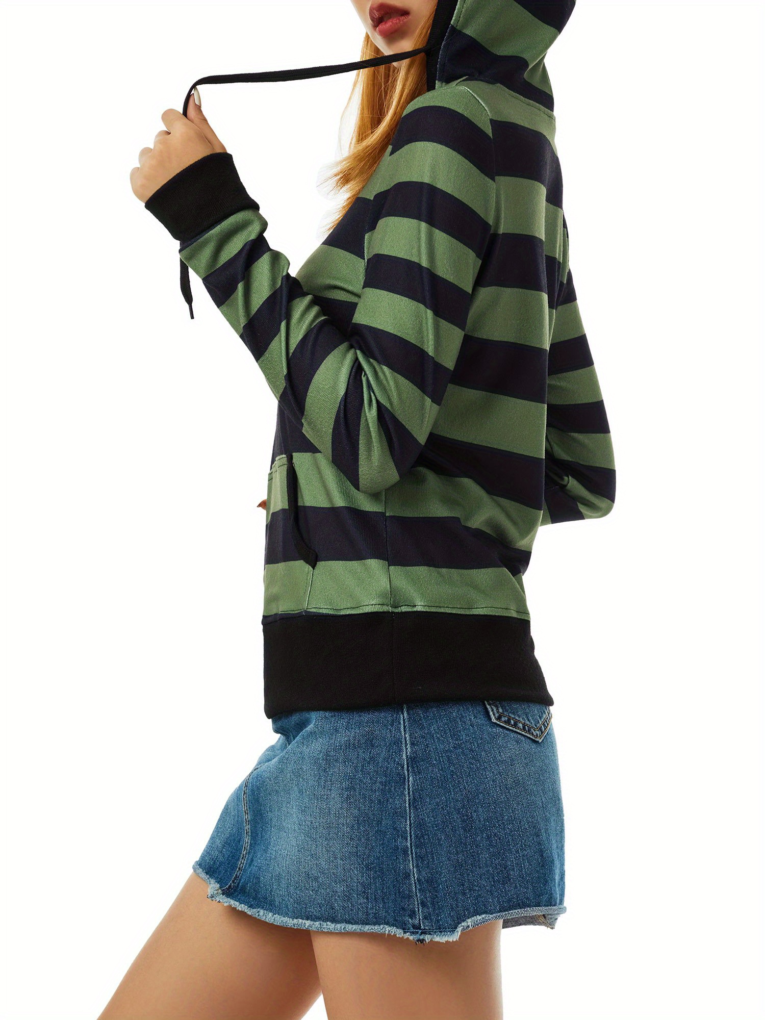 Women's Casual Striped Hoodie with Kangaroo Pocket - Long Sleeve, Round Neck Pullover, Machine Washable - Available in S/M/L/XL/XXL