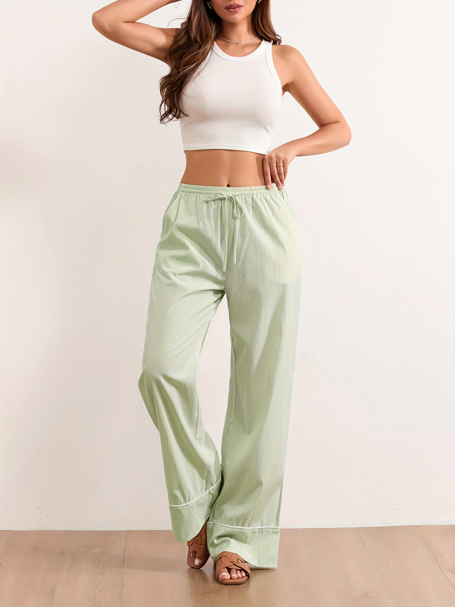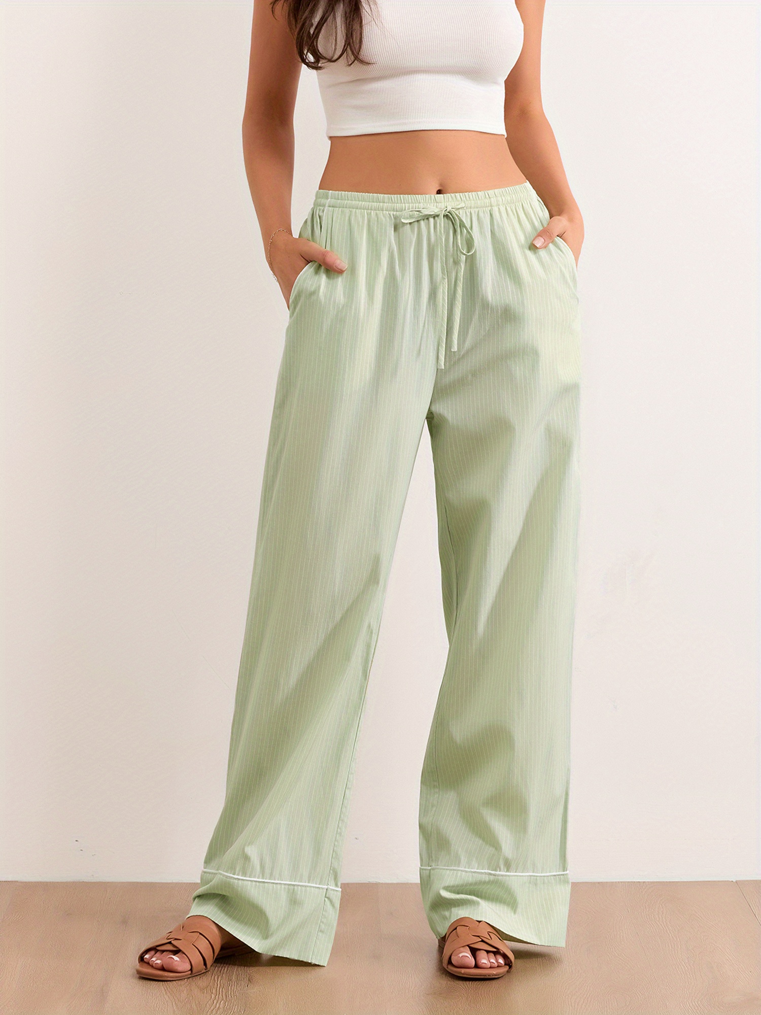 Women's Lounge Pants Stripe Drawstring Elastic Waist Loose Comfy Casual Pants Pajama Pants Sleep Trousers