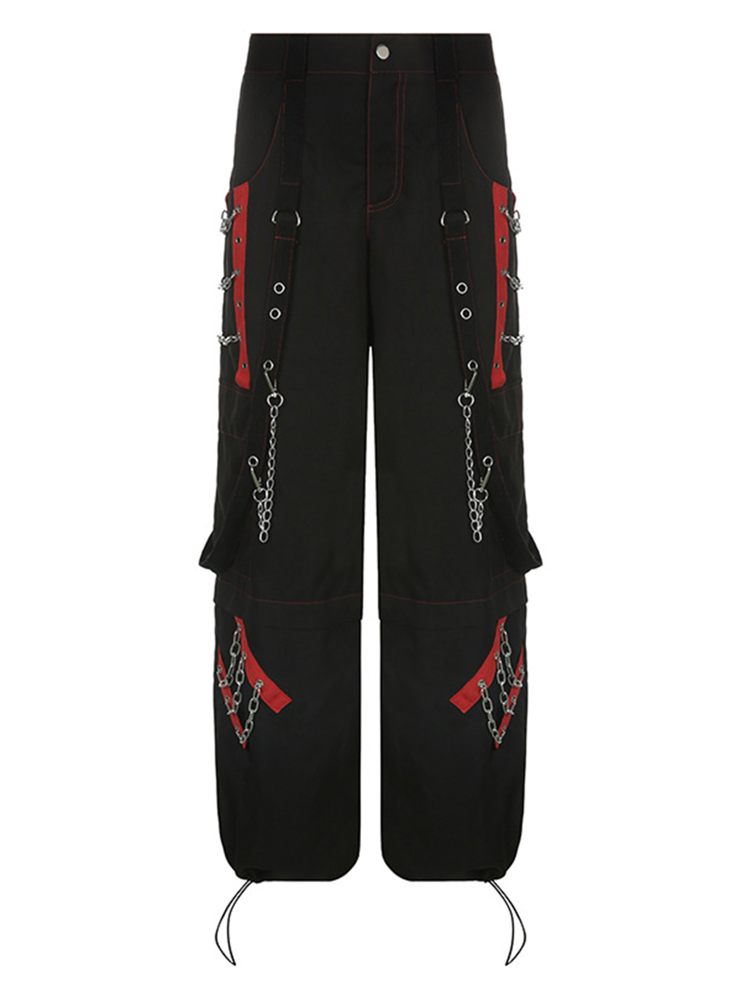 Womens Low Rise Baggy Jeans Rock Style Wide Leg Cargo Pants Washed Jeans with Flap Pockets
