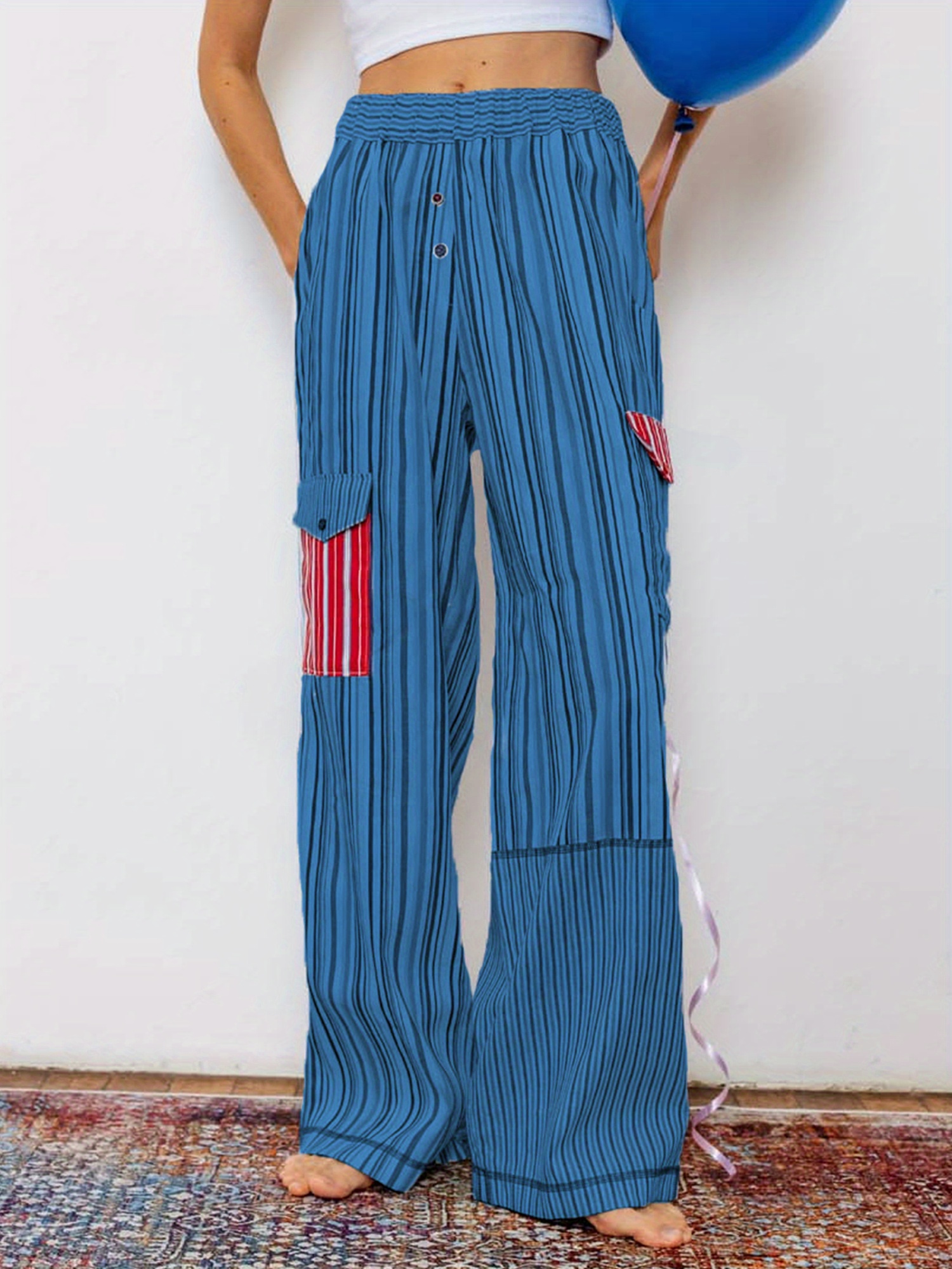 1pc Women'S Casual Striped Wide Leg Pants, Elastic Waist Loose Trousers with Pockets, Spring/Autumn Streetwear for Adults