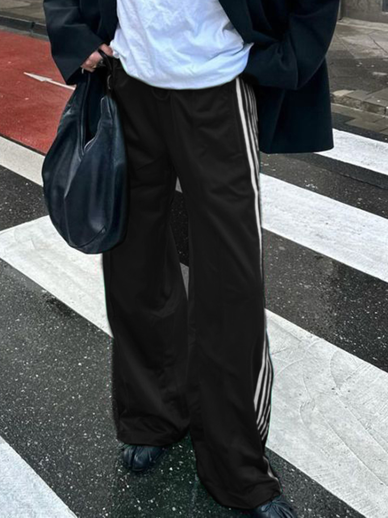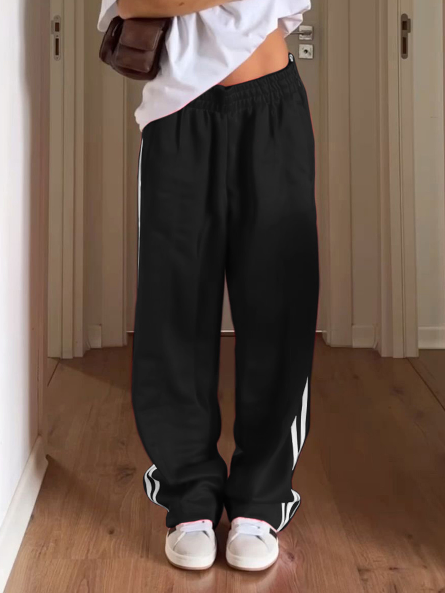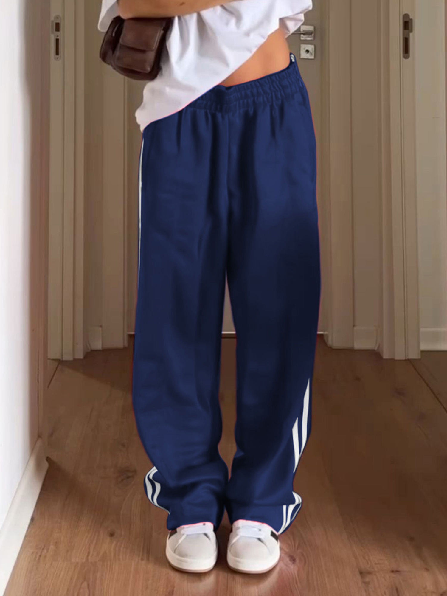 Women's Striped Drawstring Sweatpants - Casual Elastic Waist, Straight Leg with Pockets, Machine Washable