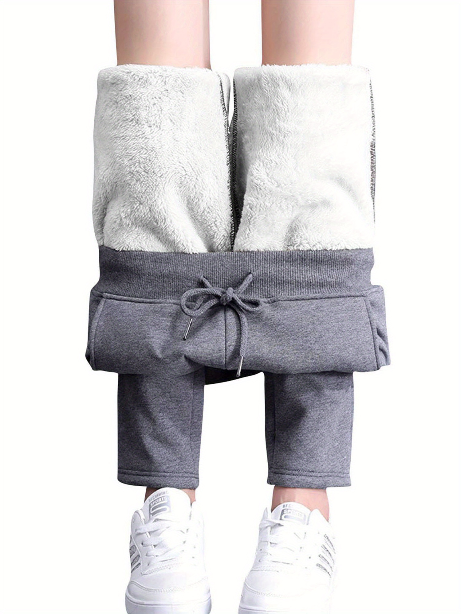 1pc Women'S Sherpa Lined Sweatpants - Cotton Casual Fleece Pants, Solid Color, Straight Leg, Woven, Adult Fall/Winter Jogger Style