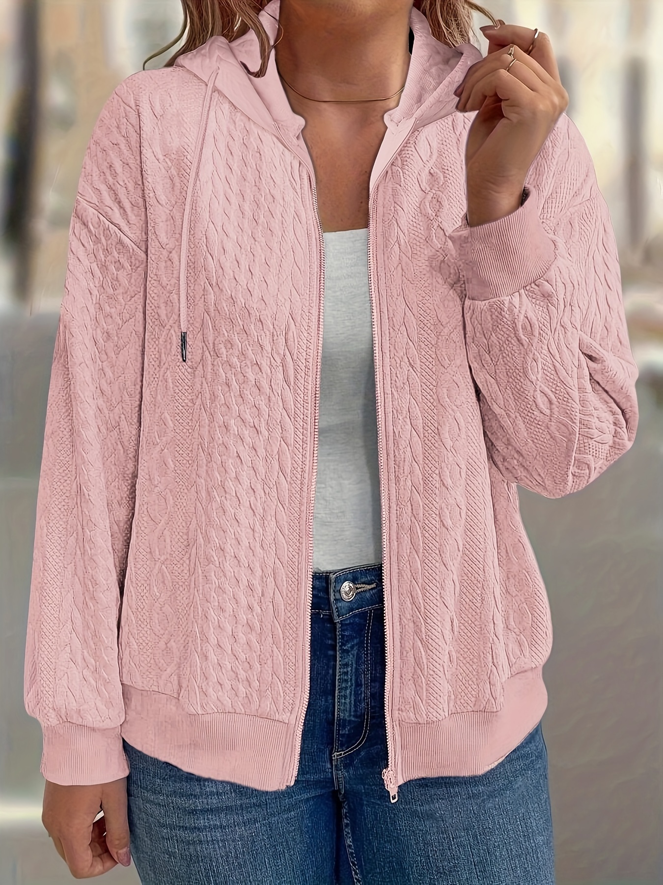 Zippered Casual Texture Fabric Cardigan Sweatshirt - With Pockets